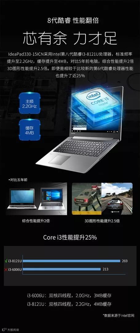 具体的性能数据都是来自某售卖IdeaPad 330笔记本的商家,号称比i3-6006U提升了25%。