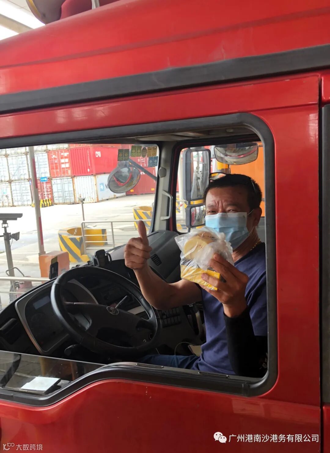 先锋队员们在闸口通道两旁设置暖心包供应点,免费为进港区的货车司机送上了食物和饮用水,拿到“暖心包”的司机大哥们,绽放出灿烂的笑容,纷纷给先锋队员们点赞,为南沙港务海港的暖心服务点赞。