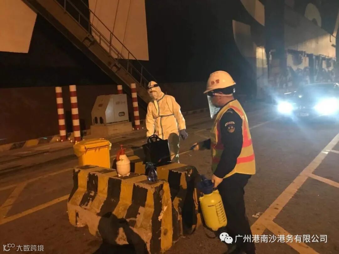 每当一艘艘集装箱班轮从国外港口挂靠南沙港务海港时,有一群全副武装的由作业指导员组成的党团员先锋队就开始忙碌起来:面对国外风险高的船舶,他们主动要求为南沙港务海港的防疫工作出一份力:他们主动守好梯口第一关,并对每一位上下船登轮人员进行消毒,预防病毒侵害,确保防疫工作平稳过渡。