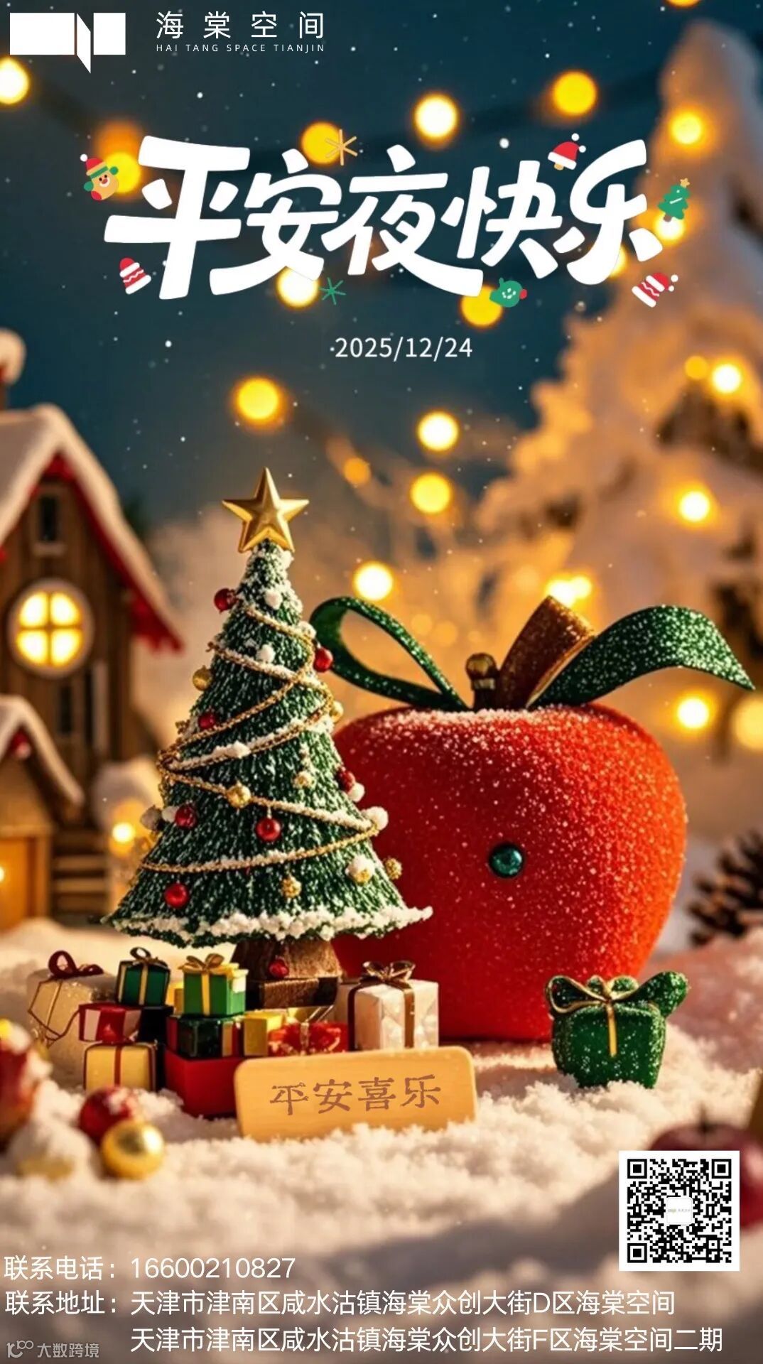 冬末岁终,佳节启幕。在这个承载着美好期许的平安夜,海棠空间秉持 “服务赋能、价值共生” 的理念,以一份精心准备的节日心意,向入驻企业致以诚挚问候与祝福,让 “平安顺遂、事业长青” 的美好寓意,随定制平安果礼盒传递给每一位奋斗者。作为入驻企业的坚实后盾,运营团队逐一向各企业派送礼盒,为冬日办公场景增添暖意,更以实际行动深化与企业的沟通联结。