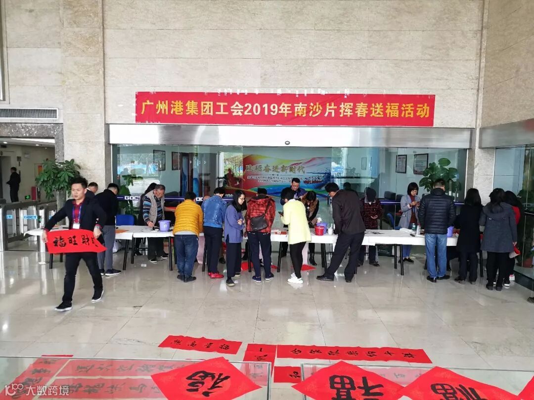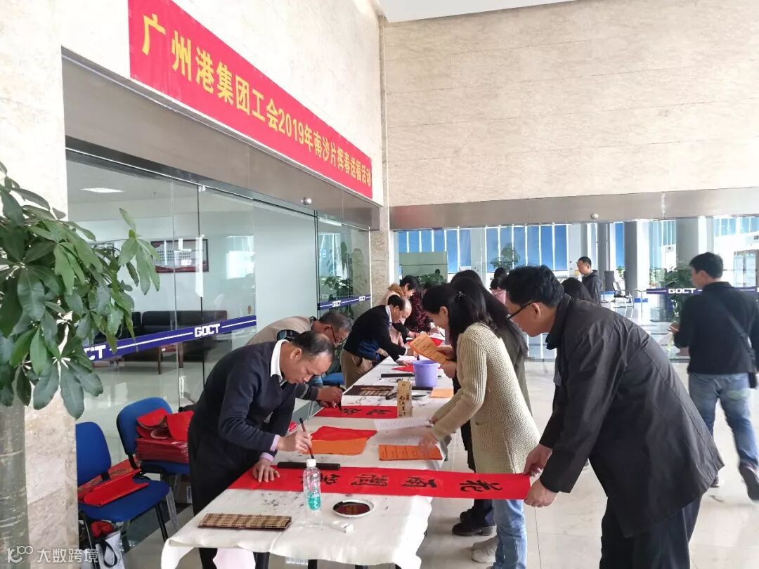 1月28日上午,由广州港集团工会组织、南沙港务海港公司承办的“广州港集团工会2019年南沙片挥春送福活动”在海港大厦如期举行。应邀而来的7位书画家即席挥毫,为大家送上新春的祝福,很快大厅便挤满了闻讯而来的员工,现场气氛热烈而有序。
