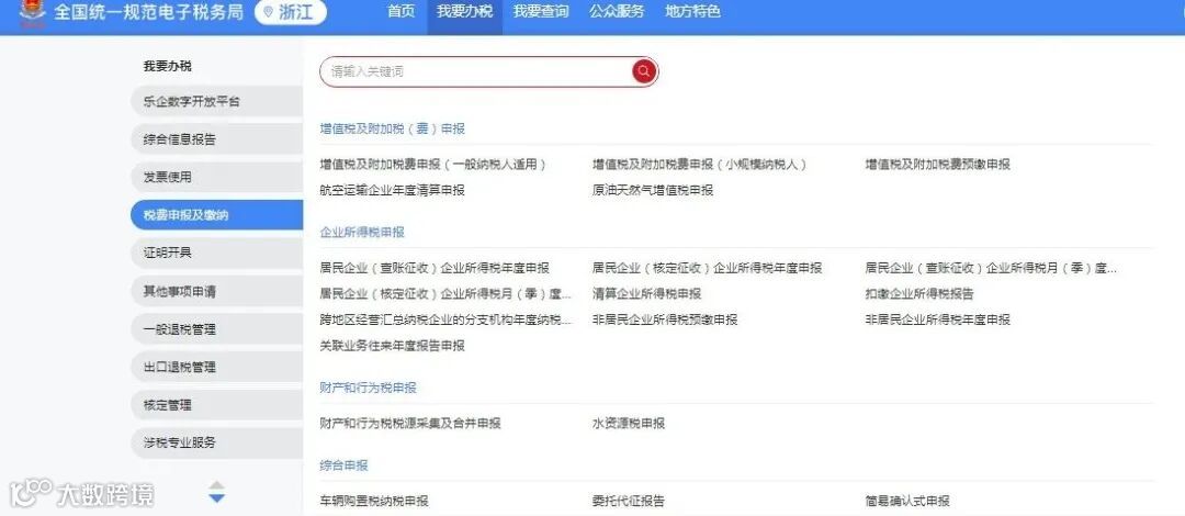 登录新电子税局(以浙江省电子税务局为例),依次点击【我要办税】-【税费申报及缴纳】,选择【居民企业(查账征收)企业所得税月(季)度申报】进入申报界面。