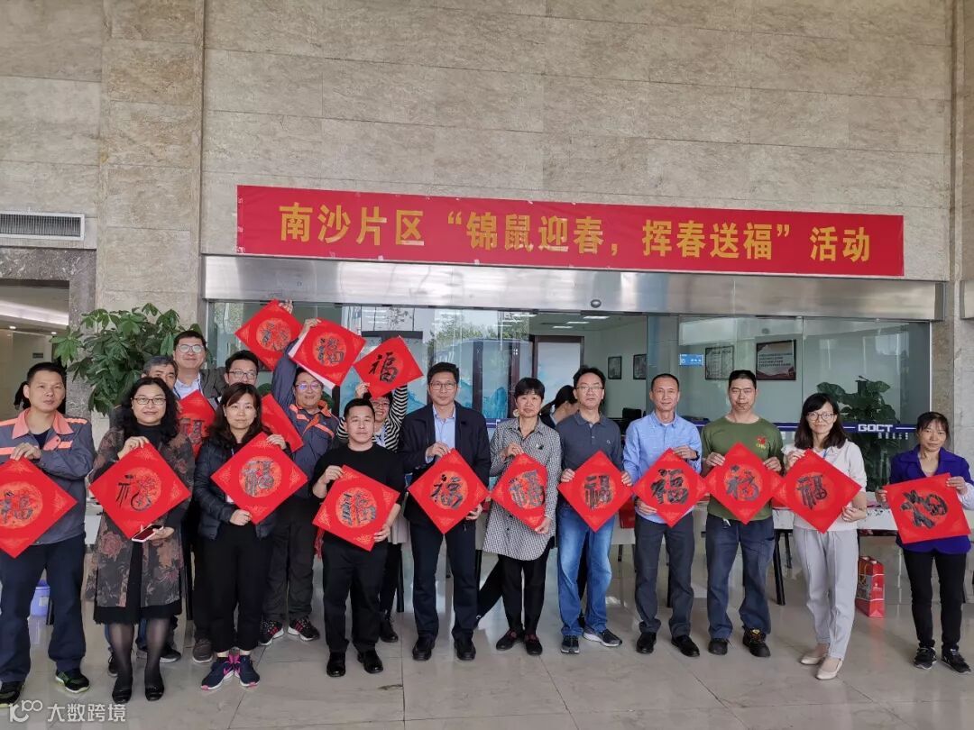 1月16日上午,南沙海港大厦一楼大厅热闹非凡,广州港集团工会组织的“挥春送福”进南沙片区活动正在南沙一二期进行。员工们自觉排着队,等着书法家们写春联、送福字。
