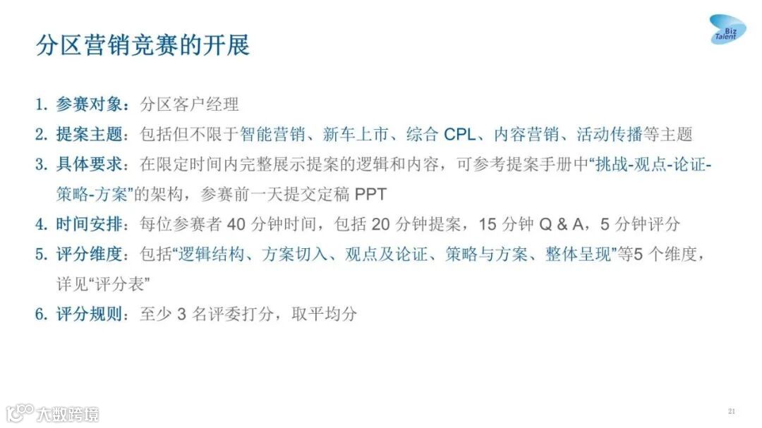 通过前期调研,以及跟客户高层反复确定后,设定五个主题:分别是智能营销、活动传播、新车上市、内容营销和综合CPL。邀请五个最牛的销售冠军来分享他们过往一年最牛案例,萃取他们背后成功的套路。
