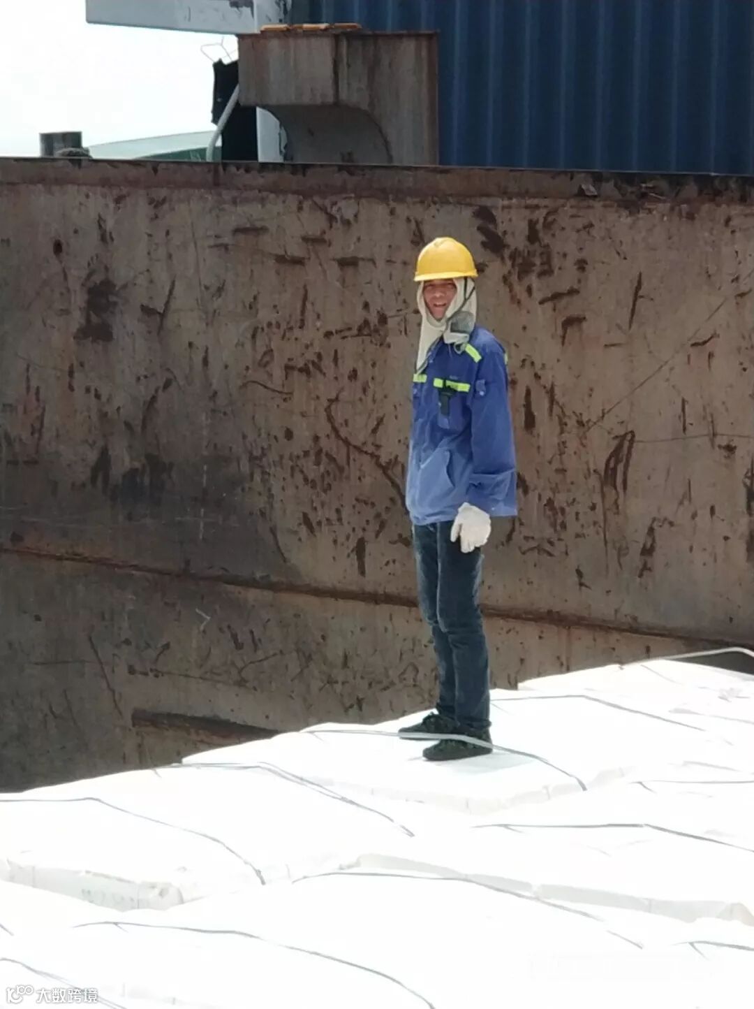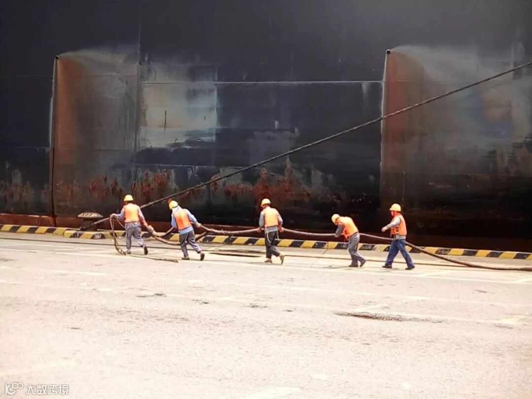 带缆工友——我不知道这沾满了咸水的缆绳有多重,我只知道若没有兄弟帮我,我一个人扛不起来,地面很烫我想快点干完。
