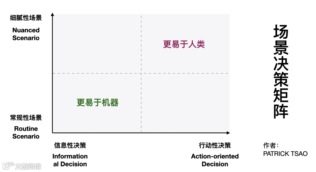 以当前的技术,在设计AI之前,仍然需要由人类先摸索出有价值的SOP(标准作业程序),因为人做不好的,AI也很难做好。同时,并不是所有“决策”都是适合机器做,机器做决策的特点是效率高速度快,但应变性弱。人类做决策的特点是灵活性高,但是容易产生疏忽和遗漏等问题。