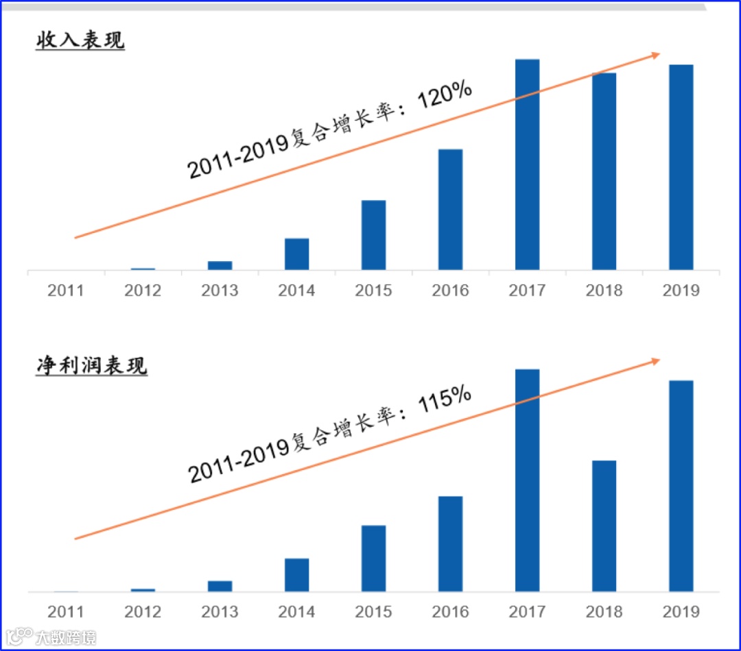 全天候科技独家获得另一份资料显示,2018—2019年,大疆的收入和净利润相比2017年均出现了下滑,尤其是2018年,营收、净利润都处于这三年的低谷。