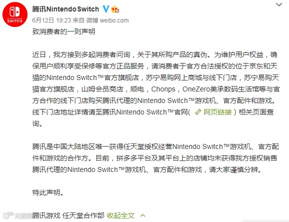 越来越多的大牌对拼多多say no。今年6月12日晚,腾讯Nintendo Switch则在官方微博和公众号发布声明,指出目前拼多多平台及其平台上店铺上销售的 Switch游戏机、官方配件和游戏均未获得授权。