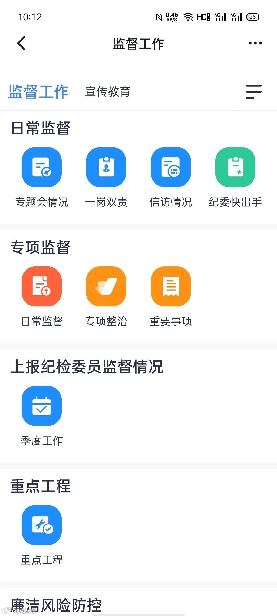 纪检云监督系统依托集团OA办公平台,已覆盖各直属党组织以及基层党支部,分为监督工作和宣传教育两大功能板块共15个子模块,其中监督工作板块下设日常监督、专项监督、廉洁风险排查等11个模块,宣传教育板块涵盖党内谈话、纪检信息、廉洁提醒和共享信息四个部分,囊括纪检监察日常工作的全部表单。