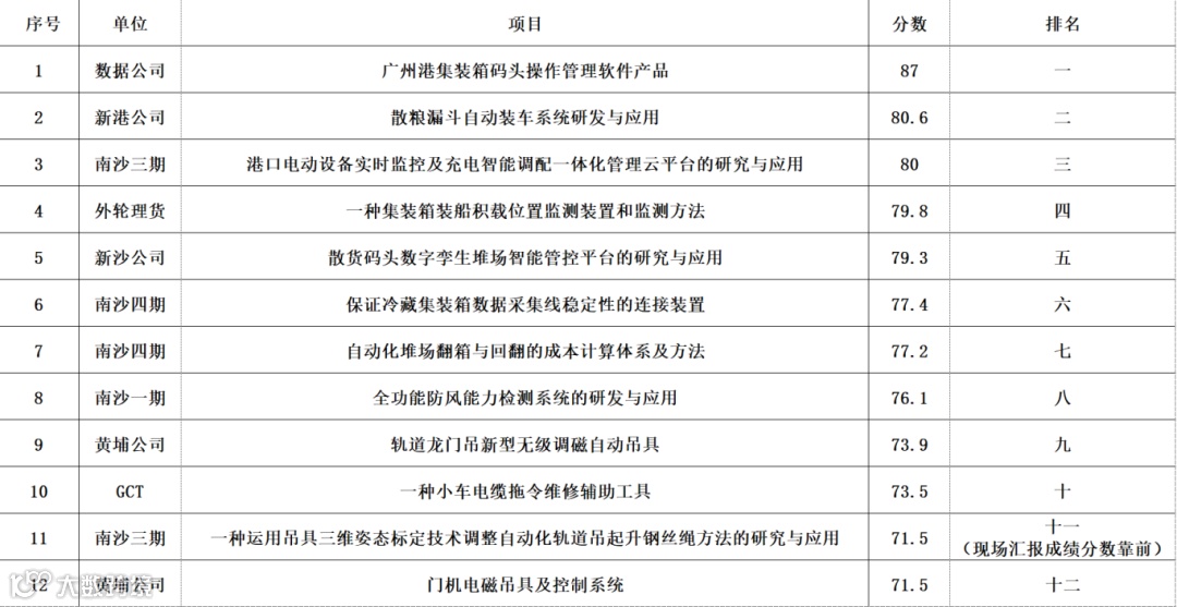 4月26日,由广州港集团工会筹办的优秀“五小”创新成果竞赛终评活动在港航中心成功举行。30个入选优秀“五小”项目中,排名前12名的项目以现场汇报的形式开展竞赛终评。经过激烈角逐,我司《广州港集装箱码头操作管理软件产品》项目荣获本次“优秀项目”金奖。