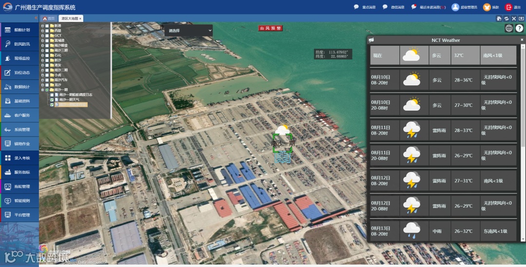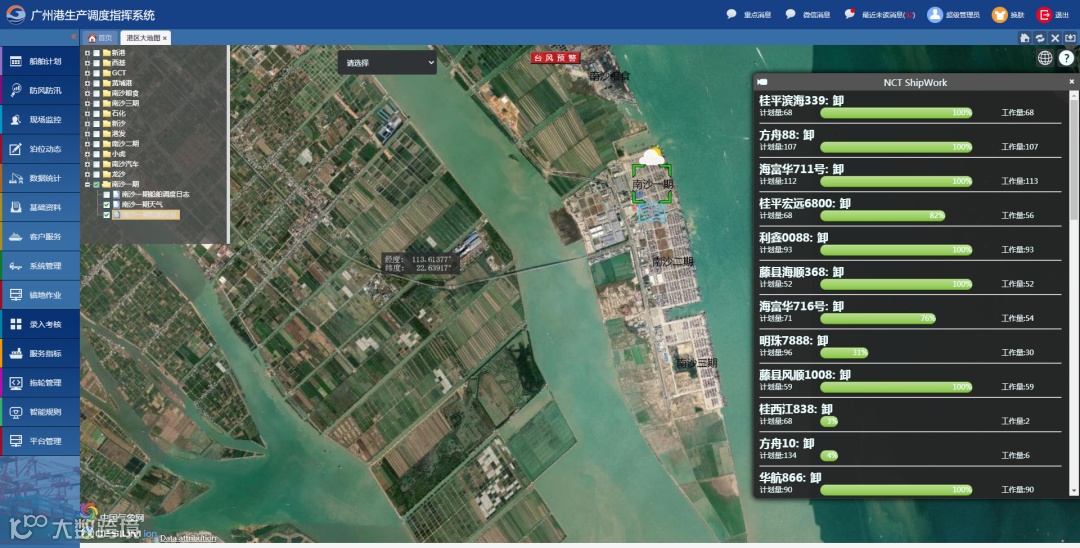 广州港生产调度指挥系统(二期)是广州港智慧调度平台的重要内容,实现了船舶智能调度、船舶航行动态监控、码头服务指标自动考核和港区大地图可视化应用,新增了锚地作业管理、拖轮需求统计、台风档案管理、微信小程序等功能,进一步深化了港口业务和信息化技术融合,广州港船舶调度指挥全面实现智慧化管理。