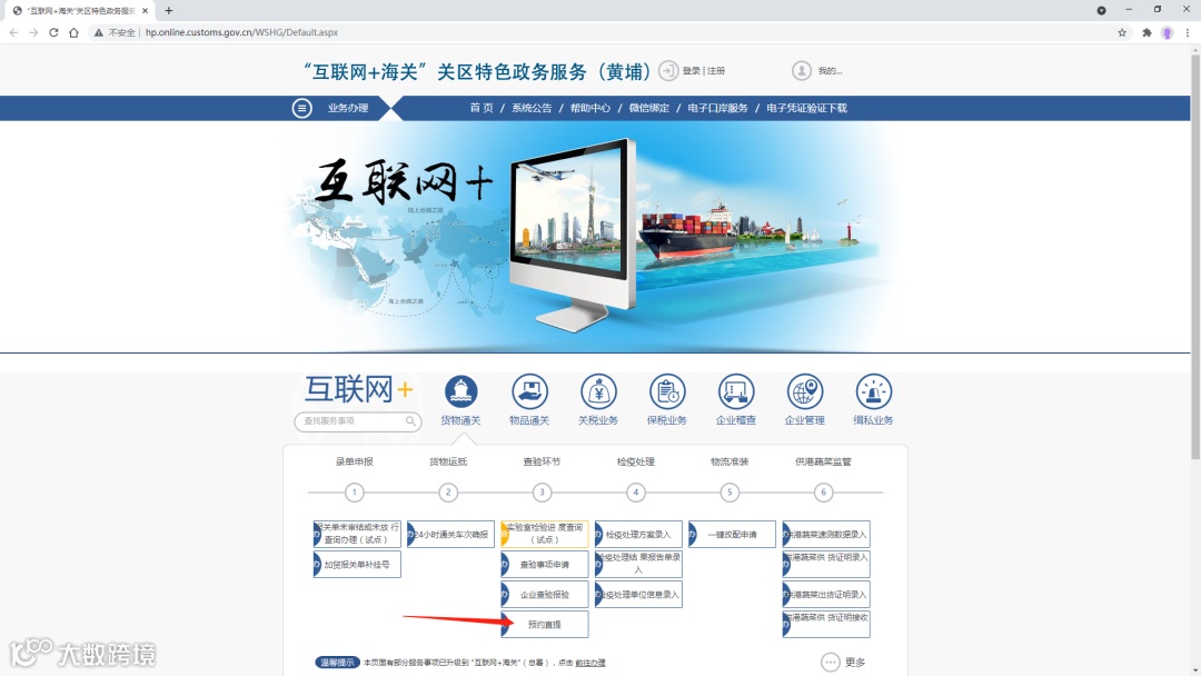 一起看看黄埔“互联网+海关”服务平台“预约直提”模块。