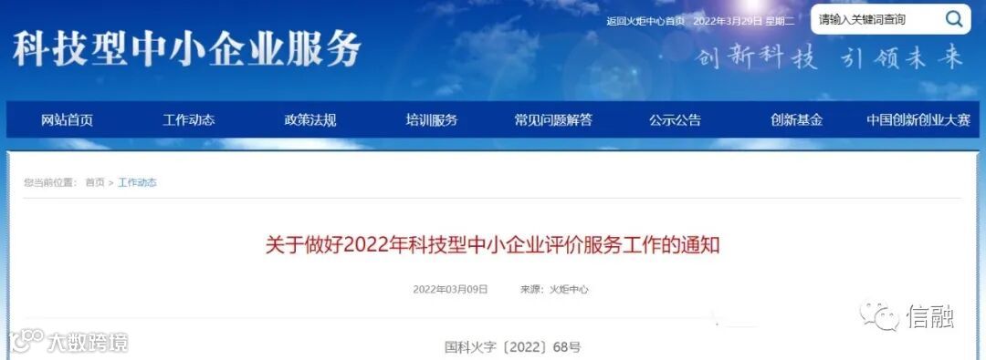 关于做好2022年科技型中小企业评价服务工作的通知(国科火字〔2022〕68号 )