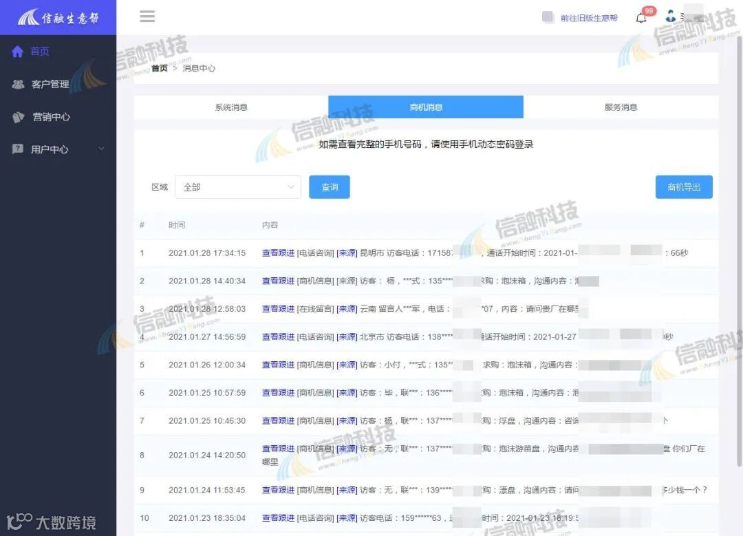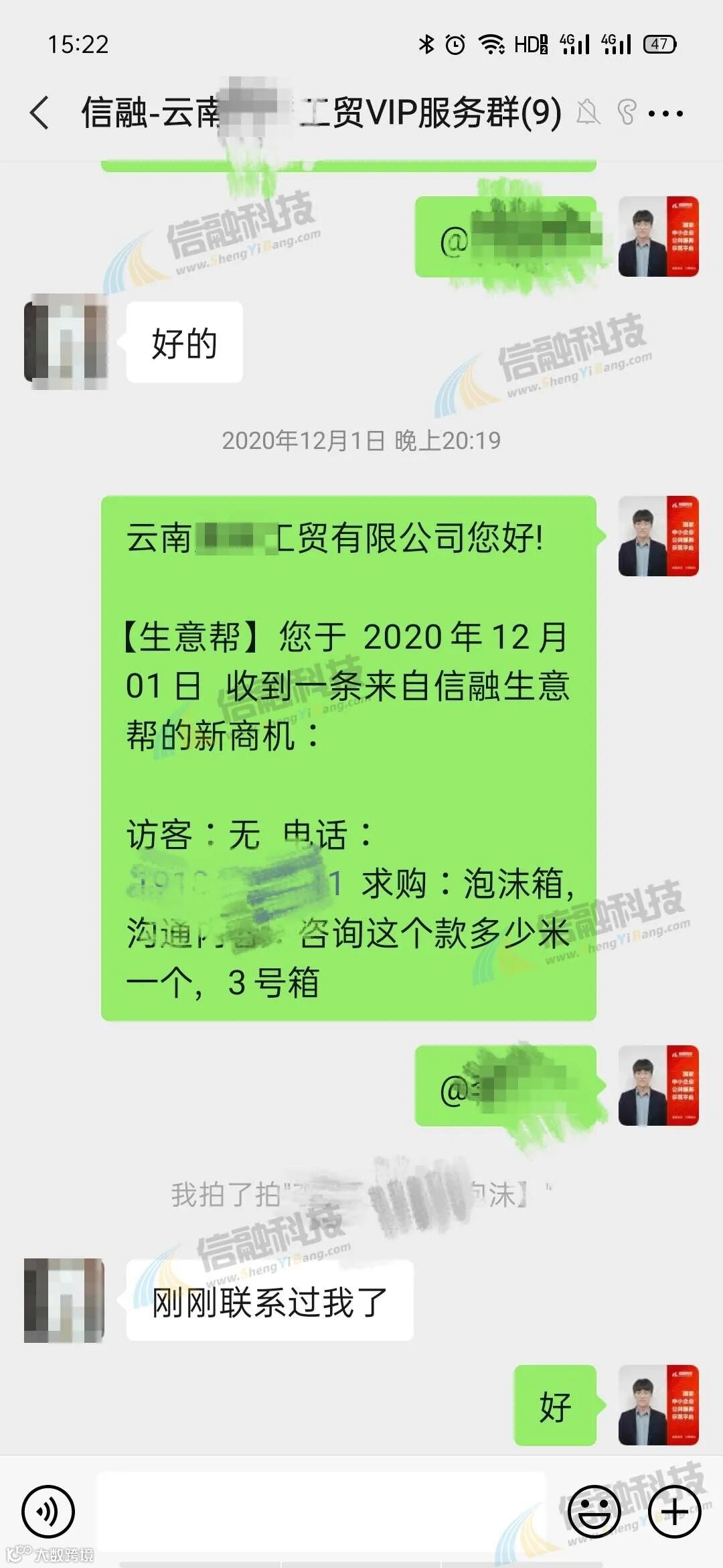 良好效果下,在2020年疫情时李总也坚持与我们续费合作。虽然因为疫情艰难,使得李总公司也出现了一些不同程度的经营难题,但是李总还是坚持了我们的合作,这让我们更受鼓舞,势以更专业、更优质的服务来回报李总。因此,看到在疫情期间依然不断的商机订单,李总决定加大推广力度,在2020年11月份又与我们签订了2021年的合作方案,并对我们提出赞扬,直说:信融让我省心!