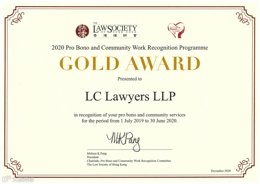 本所欣然宣布林朱律师事务所有限法律责任合伙于2020年12月31日在香港律师会举办的“公益法律服务及社区工作嘉许计划2020” 网上颁奖典礼中连续第二年获颁“公益律师行金奖”。本所合伙人郑宝玉律师及本所莫皓然律师和汪嘉恩律师亦分别获律师会颁发“个人金奖”之殊荣。