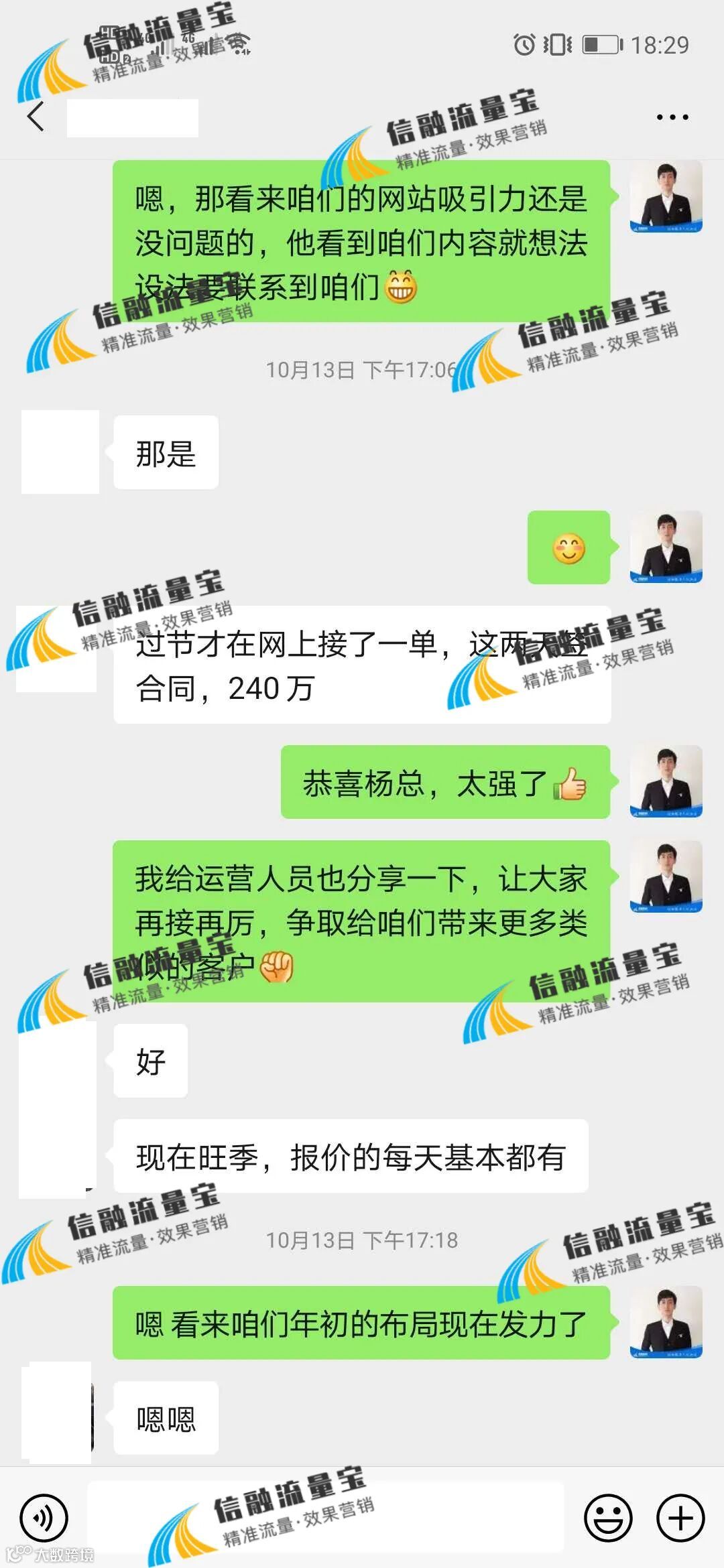 体会到使用信融微点金带来的大量咨询及成交订单后,杨总再次选择了信融科技流量宝产品。