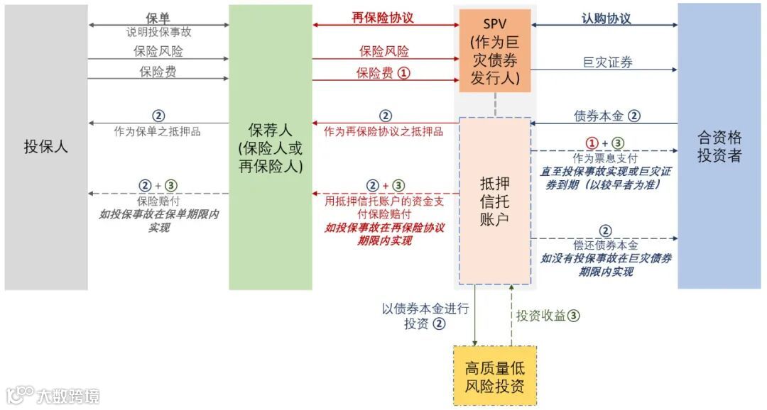 债券保荐人(一般为保险人或再保险人)成立一家特殊目的机构(“SPV”),并与SPV签订再保险协议。根据协议,保荐人将把保险风险转移给SPV,并支付保费。