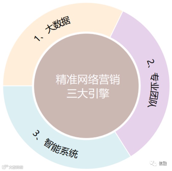 ● 如何才能真正发挥出精准网络营销的功效?信融认为,要成功实施精准网络营销、打开精准网络营销的“秘密之门”,需要“三大引擎”,分别是:大数据——精确的信息、专业团队——精准的投放、智能系统——精细的管理。其中,大数据是基础;专业团队是核心;而智能系统是保障。