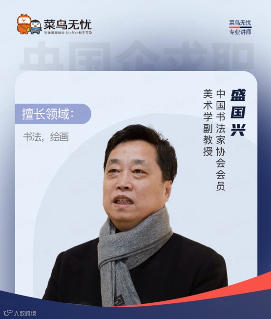 盛国兴导师以其卓越的专业素养与无私奉献精神,成为照亮大学生求职之路的耀眼灯塔。盛国兴——这位中国书法家协会会员、美术学副教授,正以跨领域的专业素养,为大学生职业规划注入别样的审美洞察与思维启迪,他的加入,为菜鸟无忧助力大学生就业的宏伟蓝图增添了浓墨重彩的一笔。