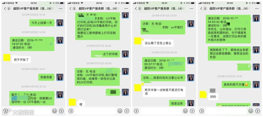 无论多晚收到的商机,我们都会第一时间发给客户,次数多了,越阳数码的褚先生说:“你们这么晚了还在上班呀?”
