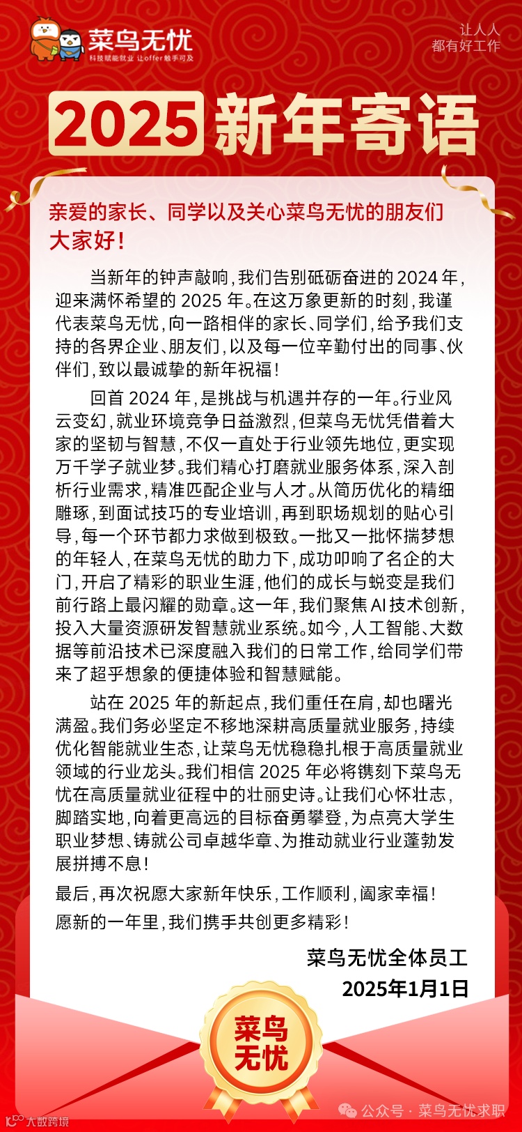 导读:菜鸟无忧,赋能大学生高质量就业