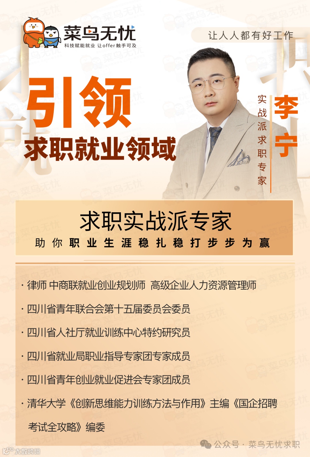 菜鸟无忧致力于为广大求职者提供优质的求职技能培训与咨询服务,我们不与任何中央企业或国有企业之间存在任何形式的招聘合作关系,不存在任何“保过”承诺。我们恪守公正、公平的职业操守,坚决反对求职中的不正当竞争行为。菜鸟无忧始终专注于通过系统的职业培训和专业的咨询服务,助力求职者提高就业能力,拓宽就业渠道,提升就业品质,实现个人职业发展目标。我们承诺将始终以高度的专业性和诚信度,赢得广大求职者的信赖与认可,以身作则带动整个行业积极正向发展。