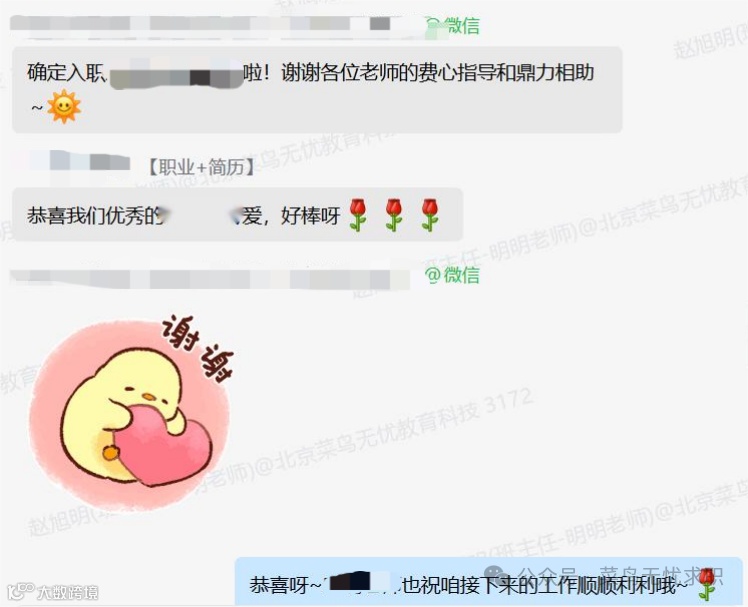 经过菜鸟无忧的全程辅导和小萌自身的努力,她成功收到心仪企业的录用通知,并已入职。这一结果不仅实现了小萌的求职目标,也体现了菜鸟无忧求职辅导在帮助学员克服困难、实现就业方面的积极作用。