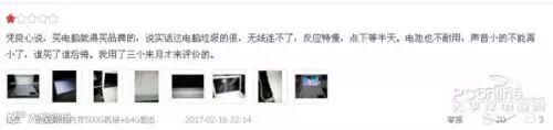 虽然这台电脑的外观和MacBook Air高度类似,但实际的使用体验用“很一般”来形容都是过分夸大了,就连5星好评的用户评价都写道“但就是偶尔异常关机,不知道什么原因;显卡和喇叭不是太好”。