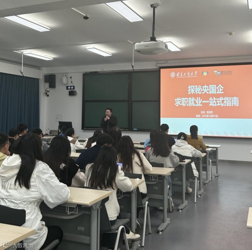 2023年10月31日,菜鸟无忧受邀来到北京工商大学,成功举办央国企求职专场指导讲座。经过菜鸟无忧总裁助理兼副总裁傅玉龙与北京工商大学鲁莹老师前期深入细致的沟通,为此次讲座顺利举行打下坚实基础。
