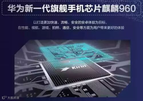 麒麟960采用16nm制程工艺,4*A73+4*A53八核架构,CPU多核性能提升18%,GPU性能飙升180%,GPU能效提升20%,并率先商用UFS 2.1,存储读写性能成倍提升。