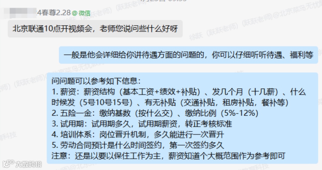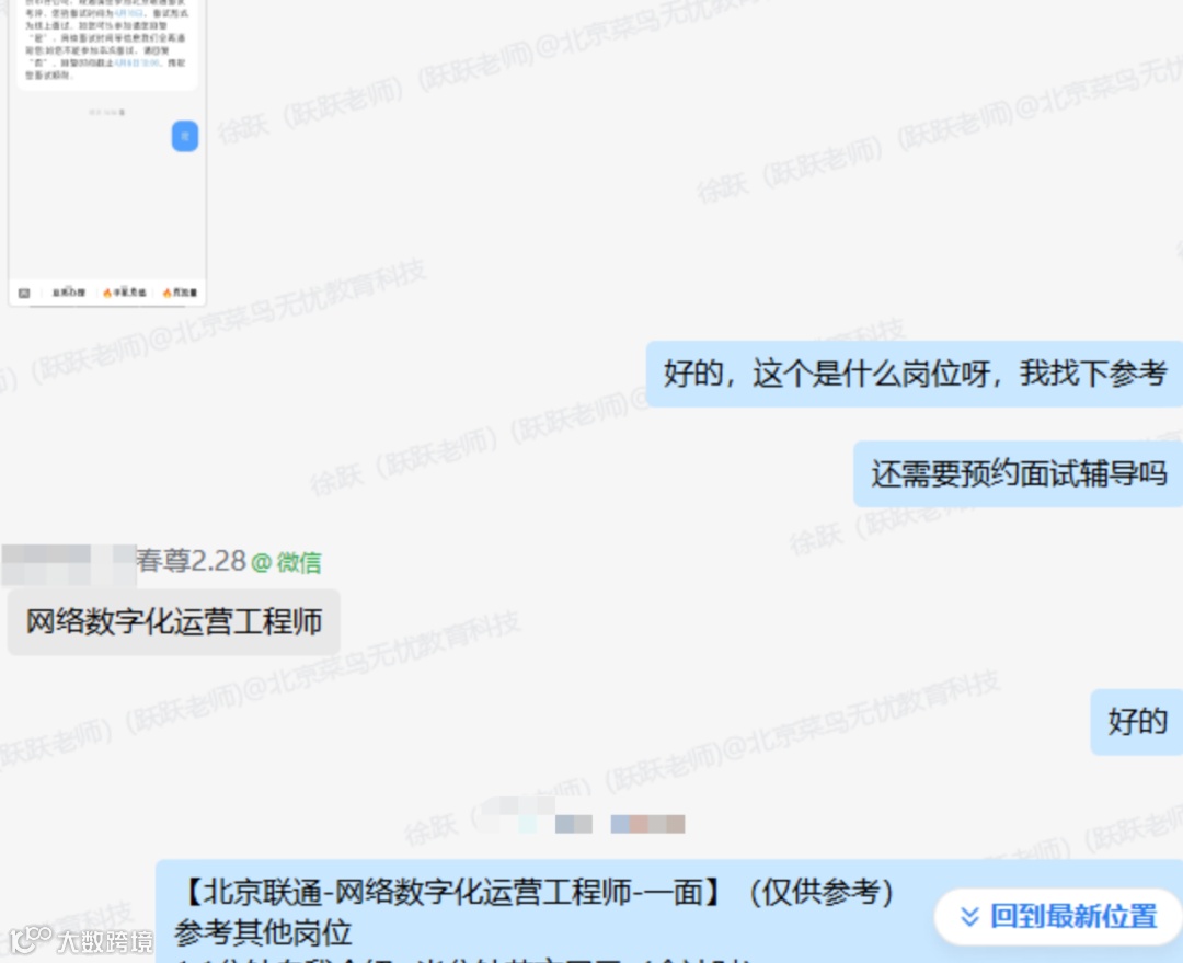 面对中国联通北京分公司的笔试和面试,菜鸟无忧的团队再次提供了全方位的支持。他们为董同学准备了详细的笔试参考题,并进行了多次面试模拟和复盘,每一个环节都细致入微。董同学从中受益匪浅,他感慨道:“老师们不仅指导我如何应对笔试和面试,还帮助我调整心态,减少焦虑感。”