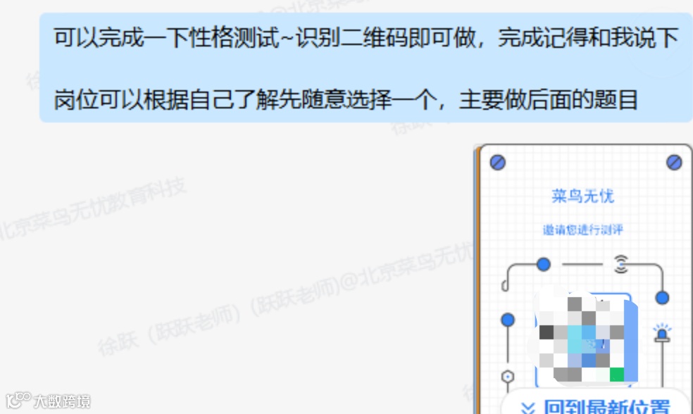 董同学的求职成功不仅是他个人努力的结果,也是菜鸟无忧团队全程陪伴和专业指导的体现。从初期的职业规划,到网申和笔试的准备,再到最终的面试辅导,菜鸟无忧的老师们一直陪伴在他左右,帮助他克服一个又一个难关。通过这段经历,董同学不仅找到了心仪的工作,也学会了如何在竞争激烈的职场中找到自己的位置。