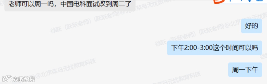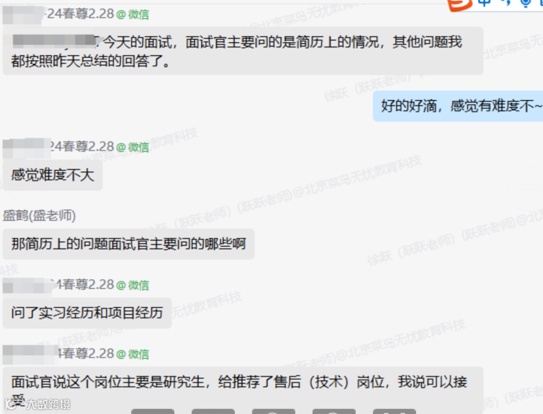 每当收到新的机会,菜鸟无忧的老师们都会迅速响应。董同学清楚地记得,第一次收到面试通知时,他内心既激动又紧张。就在他还在为如何准备面试而感到困惑时,菜鸟无忧的辅导老师们立刻采取了行动。他们第一时间发送了100例面试真题,并安排了一对一的面试辅导。老师们不仅详细讲解了面试流程,还针对常见问题进行了深入剖析,帮助董同学提升了应对面试的能力。“每次辅导后,我都觉得自己进步了一大步,信心也逐渐增强,”董同学深有感触地说。