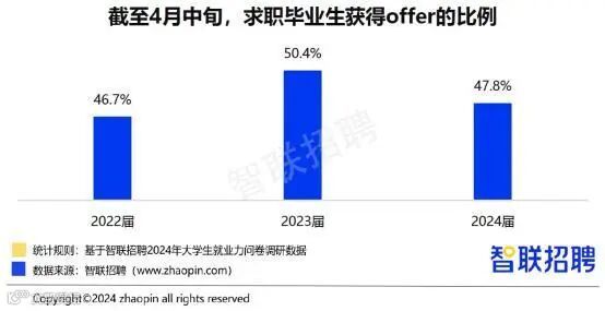 截至4月中旬,48%求职毕业生获得offer,总体平稳