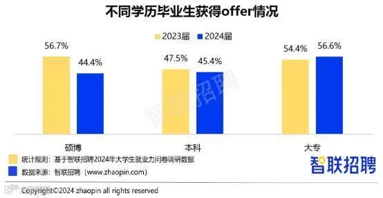56.6%大专毕业生已获得offer,较去年升高2个百分点