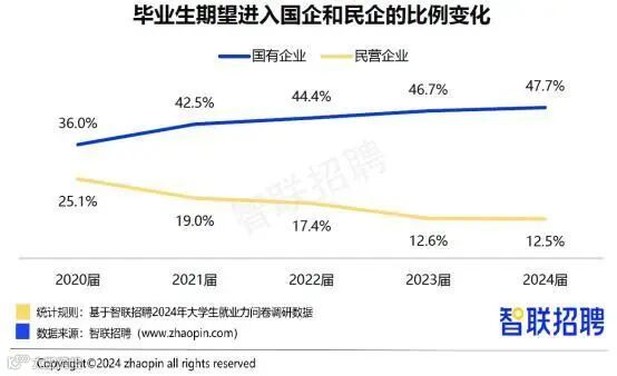 想在国企工作的应届生比例连续5年上升,今年达48%