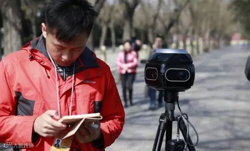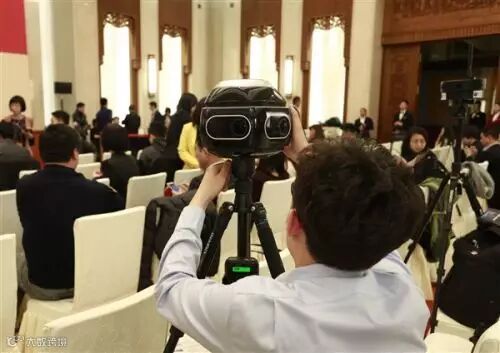 会场内外,媒体摄像正在调试全景相机。
