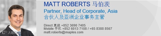 Maples集团是领先的服务提供商,为客户提供全方位的英属维尔京群岛、开曼群岛、爱尔兰、泽西岛及卢森堡法律服务。Maples集团也是独立的受信人服务、基金服务、监管与合规及实体成立与管理的服务提供商。Maples集团得以在市场上脱颖而出,有赖其以客为尊的服务,以及按照客户的具体需要提供优质的服务方案。集团的环球律师及专业人士网络,策略地涵盖美洲、欧洲、亚洲及中东地区,确保客户于最方便的时区迅速获得专业意见及客制化的支援。欲了解更多详情,请浏览集团官网:maples.com。