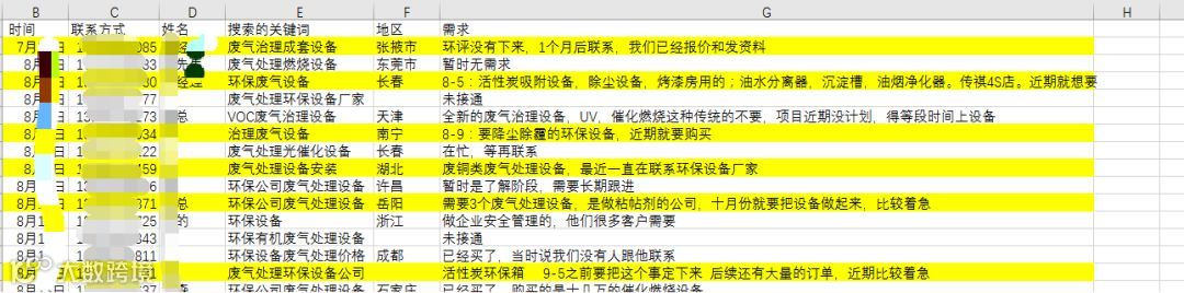 信融记录客户8月的一小部分商机表