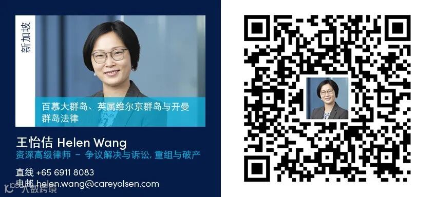 资深诉讼律师王怡佶 (Helen Wang) 加入凯瑞奥信的新加坡办公室,从事诉讼、破产和重组业务。