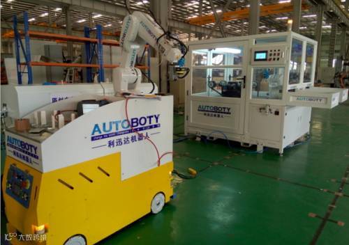 顺德的利迅达机器人就展出了他们的行走机器人、手机自动化装配成套解决方案。