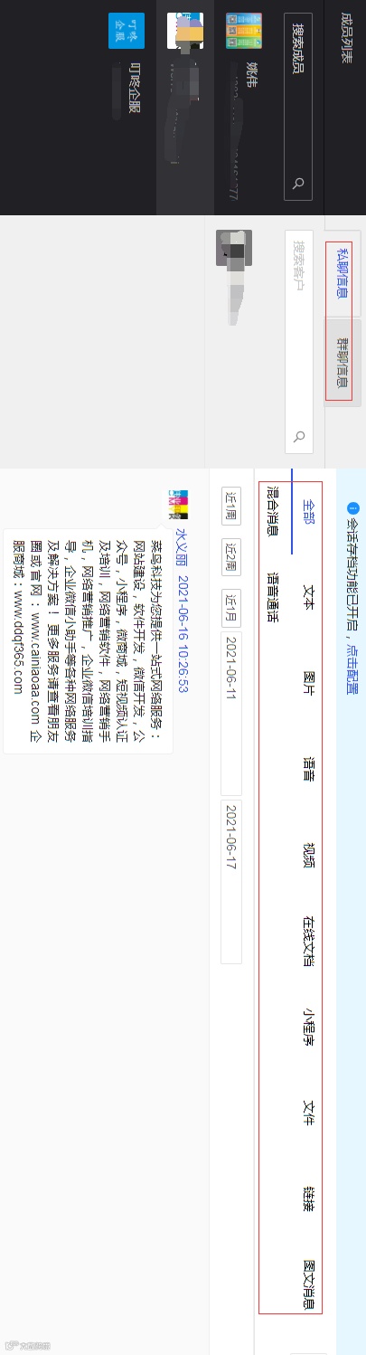 1. 支持将成员的内部、外部客户服务沟通内容存档保存