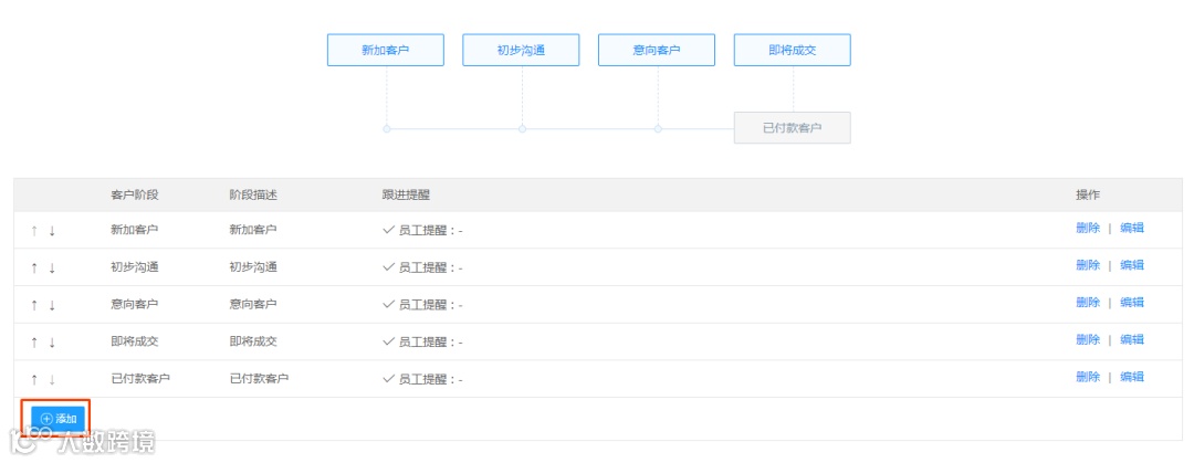 导读:客户阶段是客户全生命周期跟进记录,可以清晰的查看客户目前所处的状态,便于业务人员及时跟进和管理人员分配任务!