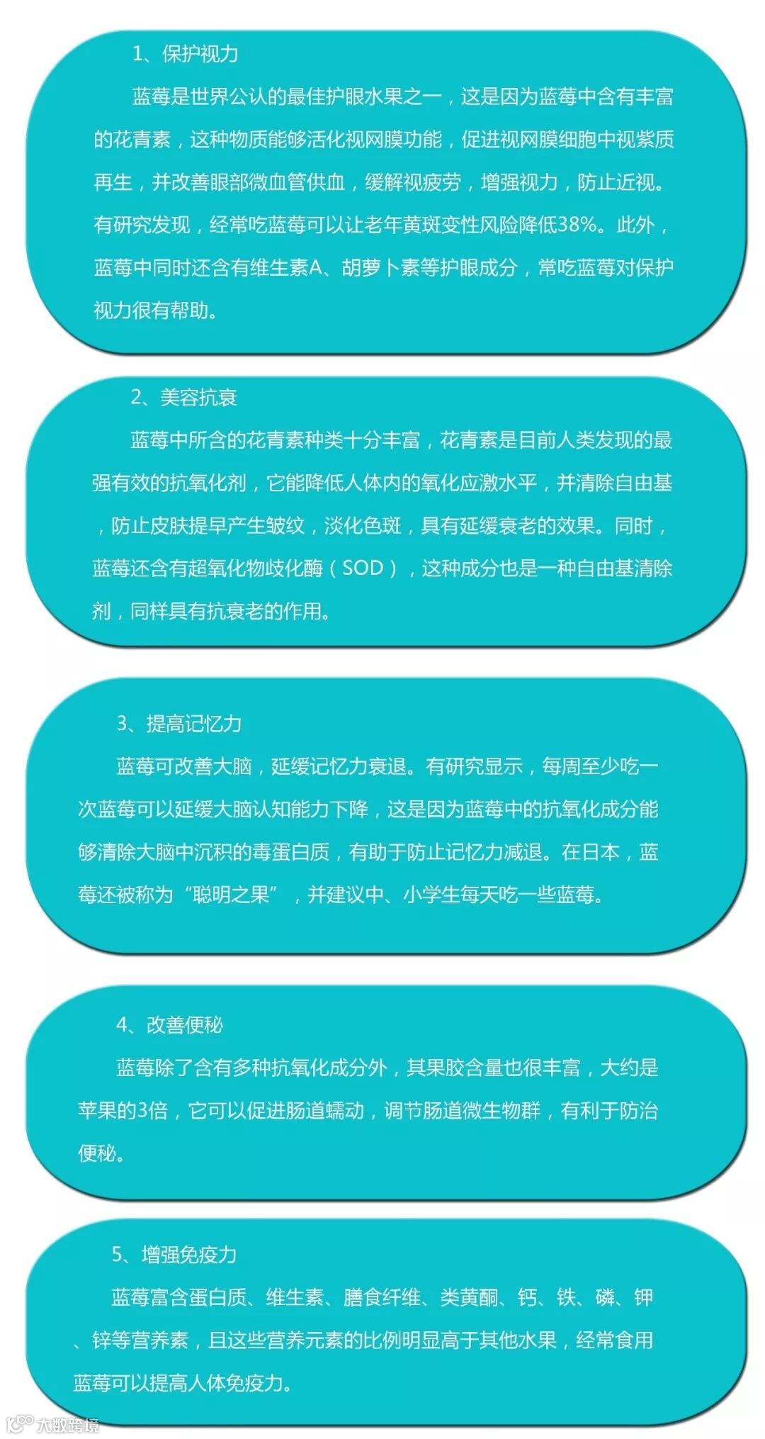 蓝莓素来有“浆果之王”、“水果皇后”的美誉,营养价值非常高。在欧美等国家,蓝莓被誉为“生命果”,可见蓝莓的营养价值有多高。