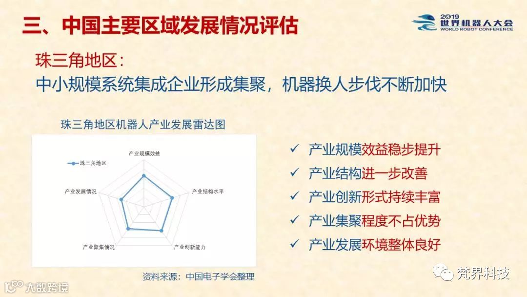 中国机器人产业发展报告(2019年)显示,全球机器人整体市场规模持续增长,中国机器人市场需求潜力巨大,工业领域以突破机器人关键核心技术为首要目标,服务领域智能水平快速提升,与国际领先水平基本并跑,颇具成长空间。