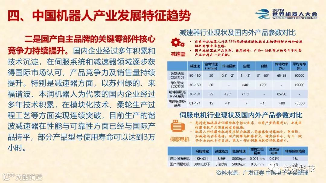 报告认为,目前,中国已将突破机器人关键核心技术作为科技发展重要战略,中国厂商攻克了减速机、伺服控制、伺服电机等关键核心零部件领域的部分难题,核心零部件国产化的趋势逐渐显现。与此同时,国产工业机器人在市场总销量中的比重稳步提高,国产控制器等核心零部件在国产工业机器人中的使用也进一步增加,智能控制和应用系统的自主研发水平持续提高,制造工艺的自主设计能力不断提升。