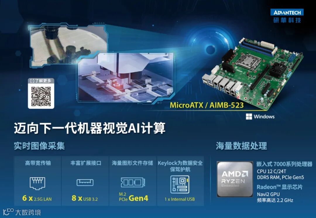 服务器级Micro-ATX工业主板AIMB-592,采用AMD EPYC™ 7003系列处理器,支持高达768GB的大容量内存、双10GbE LAN端口和4个PCIe x16扩展插槽,适用于小型工作站和医疗图像处理。另一方面,AIMB-523支持AMDRyzen™ 7000系列高性能处理器和B650芯片组,并设计有6个LAN端口和8个高速USB 3.2端口,可支持高分辨率数字摄像头等各种扩展功能,显著提高自动化视觉检测效率。
