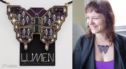 这是一个可穿戴式电路板设计,它不仅形状很酷而且真的能当配饰;这款PCB的电路能驱动16颗LED组合成的发光数组,并可利用上面的12颗迷你太阳能电池充电,如果你不想站在太阳下太久,也能用USB线充电。非常独特的装饰品吧?