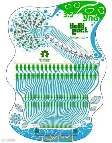 以下是许多有如艺术品的电路板设计,对于这些创作者,笔者忍不住要赞赏他们的努力成果;当你在做电路板绕线设计时,你可以维持传统做法使用枯燥简洁的线条,但加入一些变化与美学的绕线形 式在功能上并不会打折扣;看看这些作品,难道你不觉得它们看起来是如此生机勃勃,比纯粹讲究实用主义的四方形绿色塑料板更有“人性”?