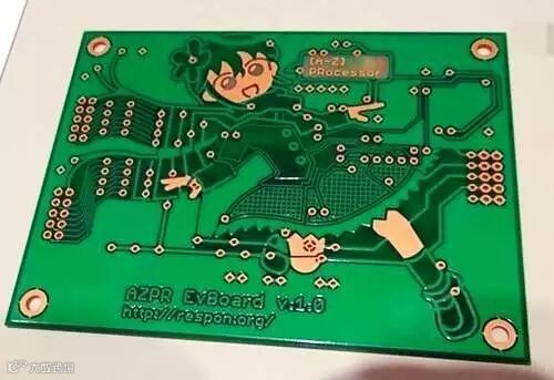 日本漫画人物跟电路板设计也是可以结合的──以下是一款日本工程师开发的Xilinx Spartan-3E系列FPGA开发板(AZPR EvBoard),它的代言人(而且还有3D立体公仔)有个很可爱的名字叫“基板少女”;电路板上面的图案不是用印刷,而是以绕线与接地平面组成…宅男们 心动吗?